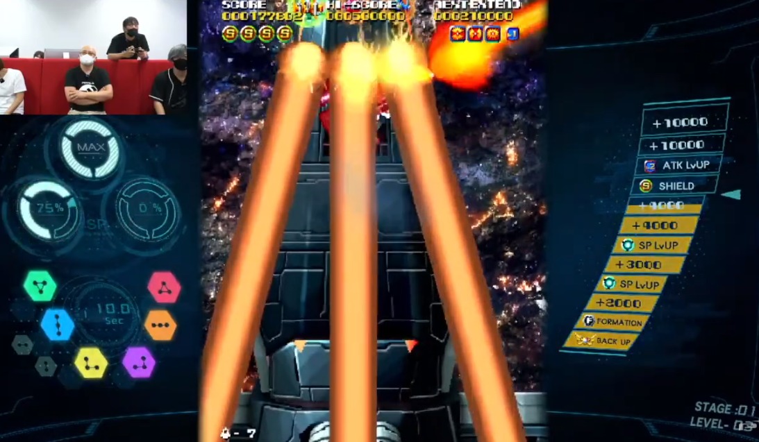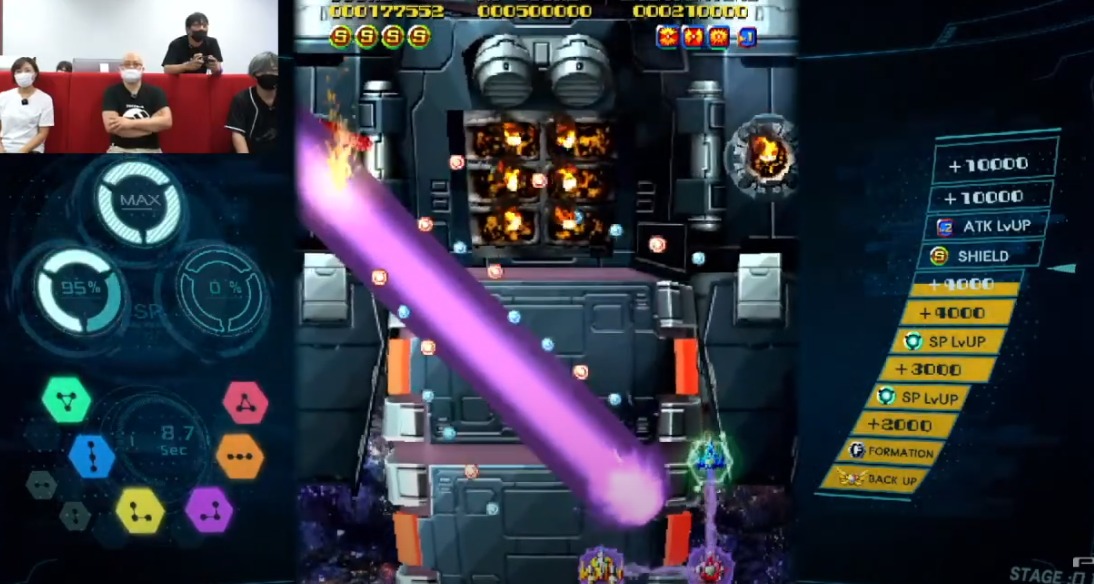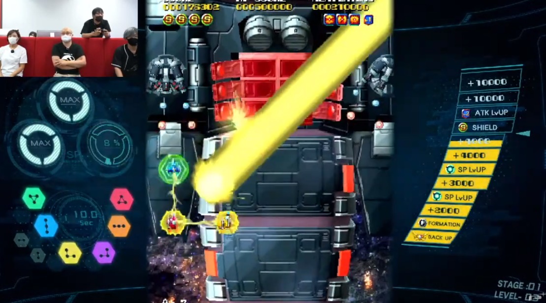 此外此前公布的打飞机游戏《SOL CRESTA》也由制作人神谷英树介绍了最新内容,本作主打自由合体组合,游戏中三架飞机可组合在一起,并且根据不同的配置还可以放出不同方向的激光炮和攻击方式。而游戏中的射击种类也十分丰富除了普通的散弹、激光、还有砖头等等。本作将于2021年内登录PS4、Switch、Steam。