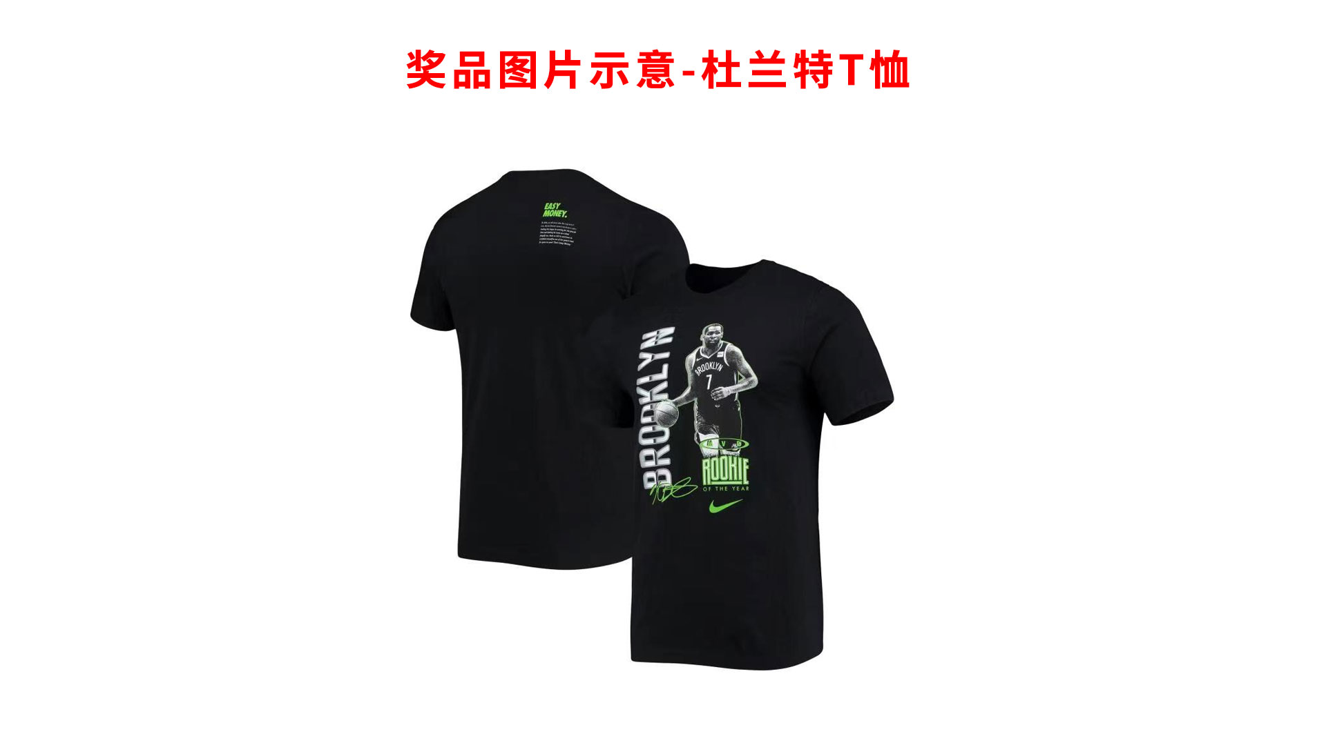 2、规定时间内在完成评分+含有图文评价的柄友中再额外抽取1名赠送篮网队杜兰特T恤。