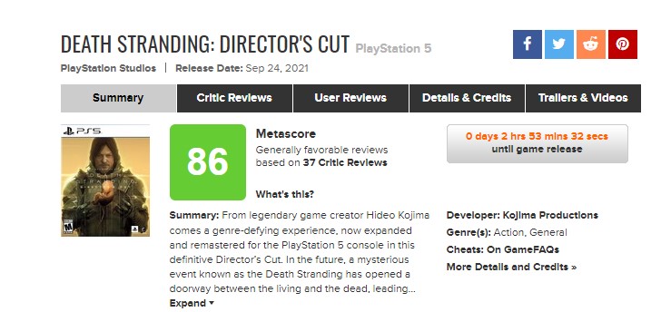 《死亡搁浅 导演剪辑版》全球媒体评分解禁,MC均分86分,目前收录了37家媒体评分,其中IGN给出7分。IGN表示导演剪辑版相比原版更容易上手,但感觉更像是制作人“妥协”后的产物(原版更能表达制作人原本设想)。