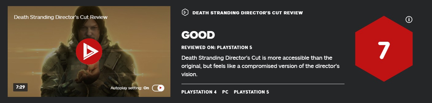 《死亡搁浅 导演剪辑版》IGN7分,MC均分86分