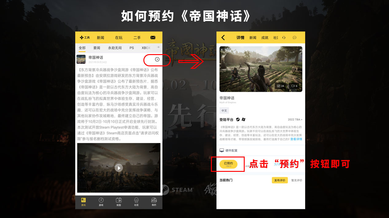 点击右上方进入游戏详情页,在下方点击“预约”游戏,我们将从在10月2日~10月8日中午12点期间内新预约《帝国神话》的柄友中,抽出3位柄友,各赠送80元游戏金。