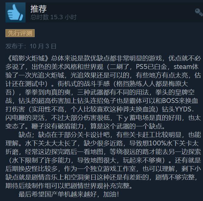 《暗影火炬城》Steam获玩家“特别好评”