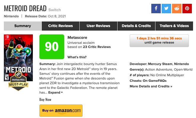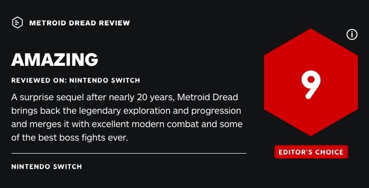 【《银河战士5》评分:IGN 9分,GameSpot 8分】《银河战士5:生存恐惧》的全球媒体评分已经解禁。IGN为本作给出9分高度评价,而GameSpot则为本作给出了8分的评价。目前本作在MetaCritic上的媒体均分为90分。游戏将于10月8日登陆Switch平台。