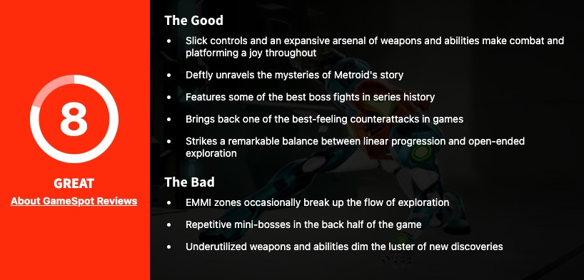 《银河战士5》评分:IGN 9分,GameSpot 8分