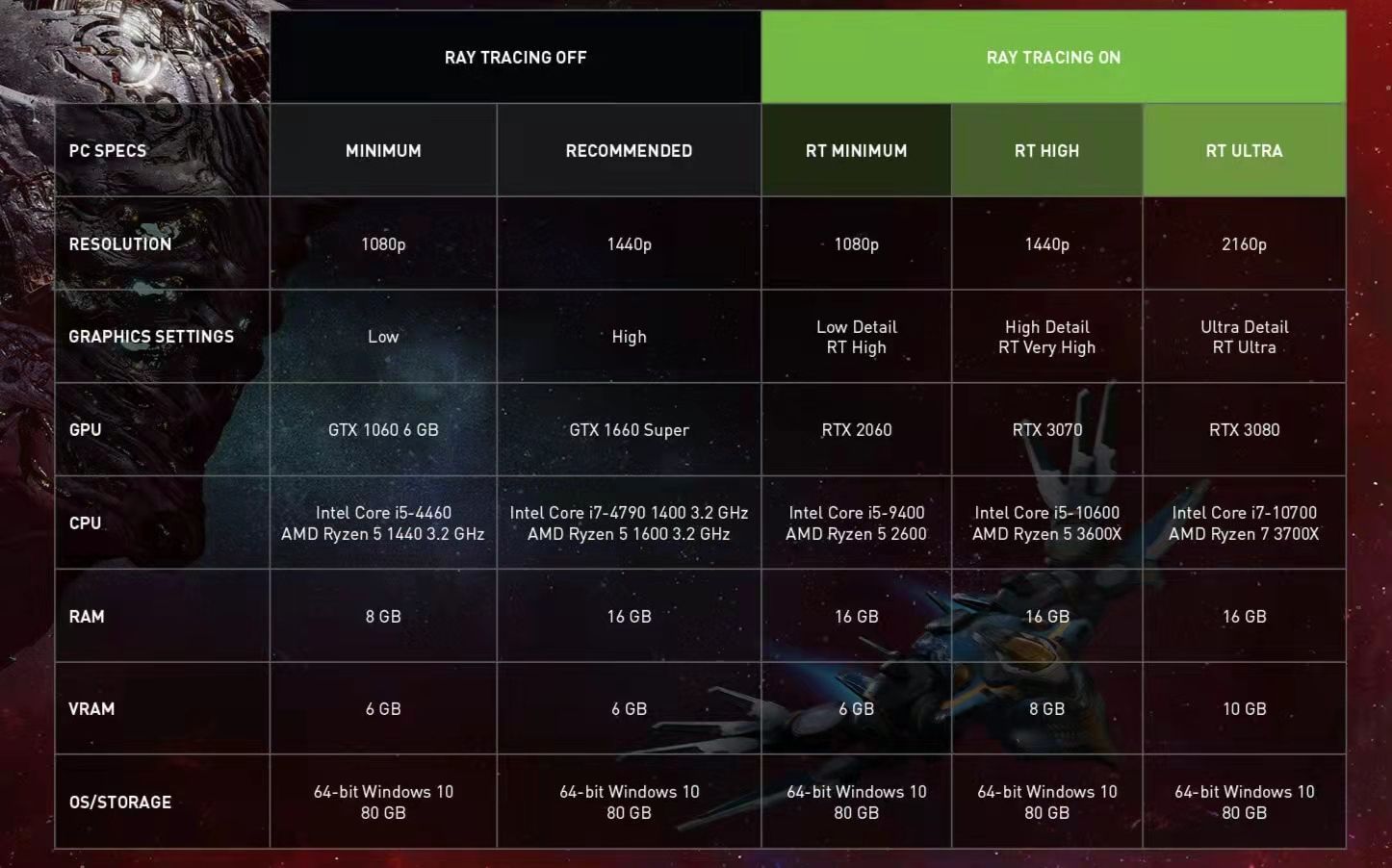 【《漫威银河护卫队》开启光追最低需求公布】NVIDIA 刚刚公布了在PC上《漫威银河护卫队》开启光线追踪的配置要求,该游戏将仅在PC上支持光线追踪反射,并将支持NVIDIA的DLSS技术。PC游戏玩家至少需要一块RTX2060显卡才能开启光追。而且这还是1080p的前提下。对于想要1440p并且是高画质的玩家,您需要RTX3070。至于想上4K和极高画质,玩家就要准备一块RTX3080显卡了。但NVIDIA并没有说明这些配置要求是否已启用了DLSS的状态。