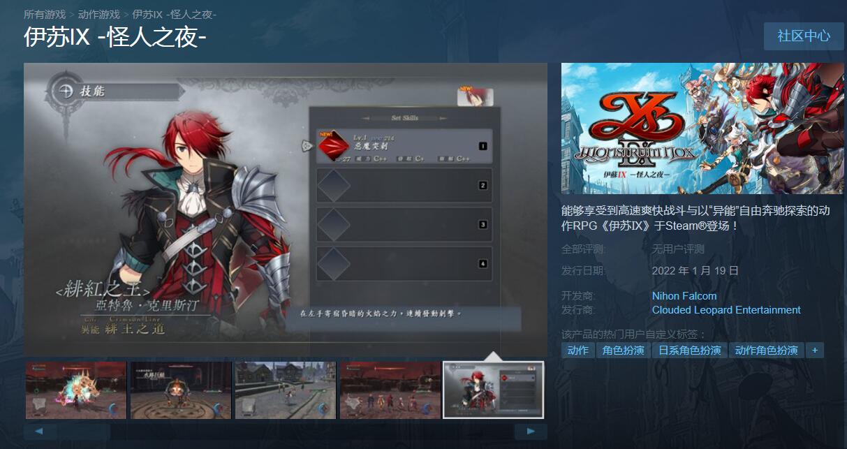 Steam《伊苏9:怪人之夜》中文版页面现已上线
