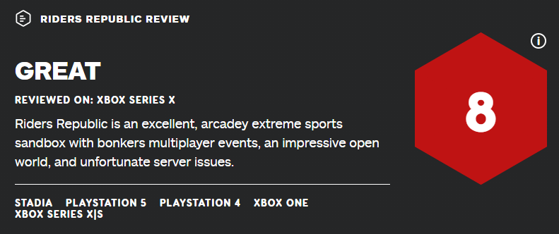 【《极限国度》获 IGN&GS双双8分评价】育碧旗下最新多人开放世界极限运动游戏《极限国度》已于日前正式推出,近日外媒IGN和GameSpot双双为本作打出了8分的评价,其中IGN表示虽然服务器存在许多问题,但其极限疯狂的运动配上开放世界让人为之震撼。总评为:《极限国度》可以看出是一部充满野心的作品,虽借鉴了一些其他同类开放世界的体育赛车游戏,但最终开放世界+体育运动实在让人欲罢不能。就是服务器的不稳定非常影响游戏体验。