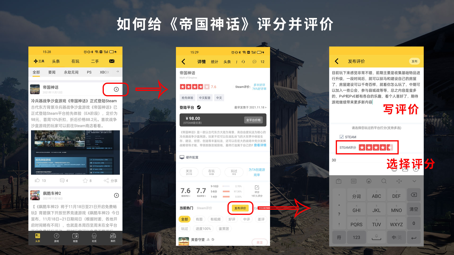 活动要求:在《帝国神话》游戏详情页给游戏打分并写下自己的游玩评价