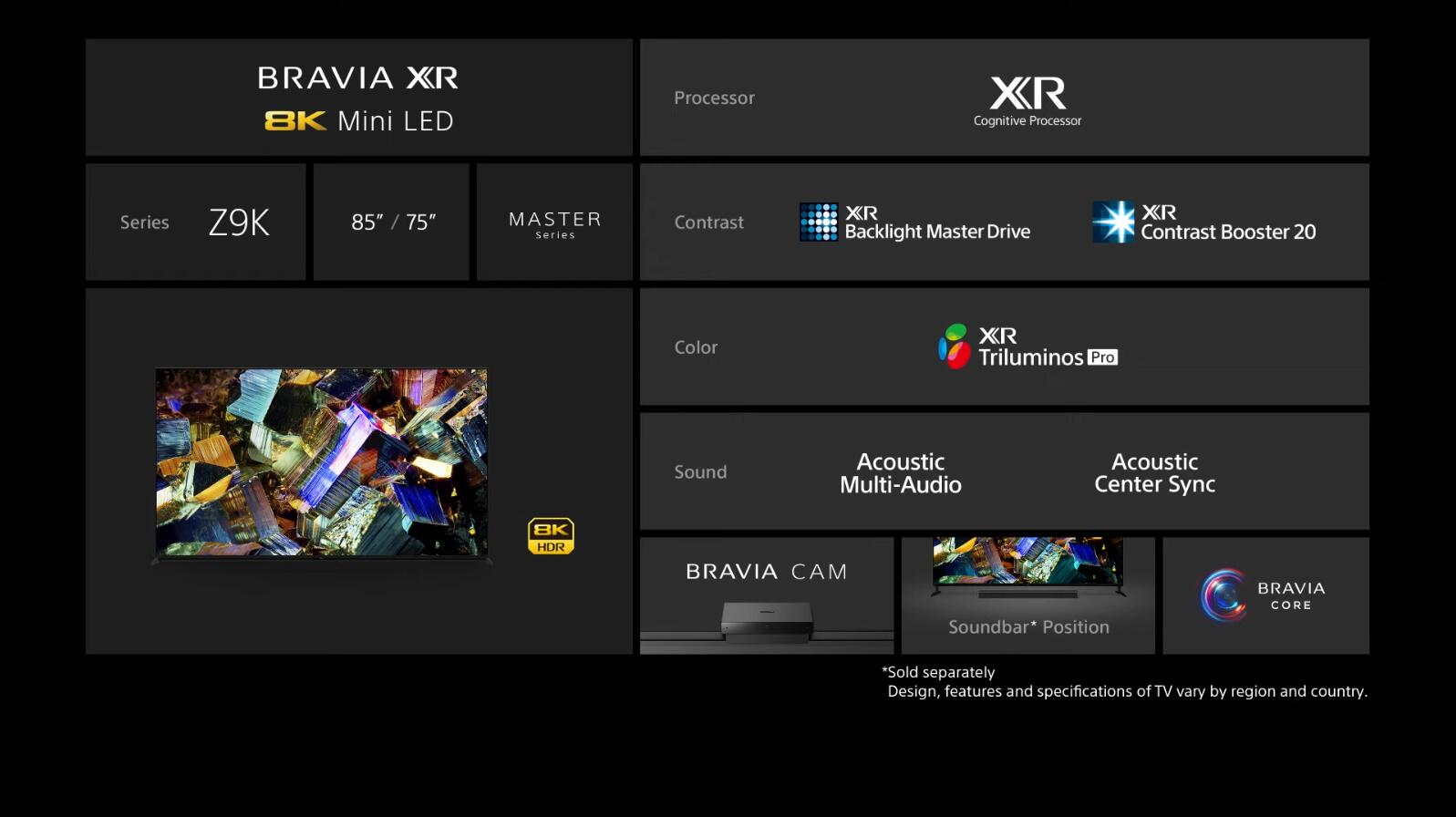 索尼发布BRAVIA XR系列电视新品,8K旗舰Mini LED电视Z9K等