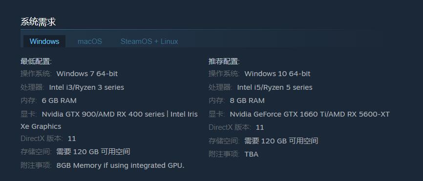 显卡: Nvidia GTX 900/AMD RX 400 系列 /英特尔 Iris Xe 显卡