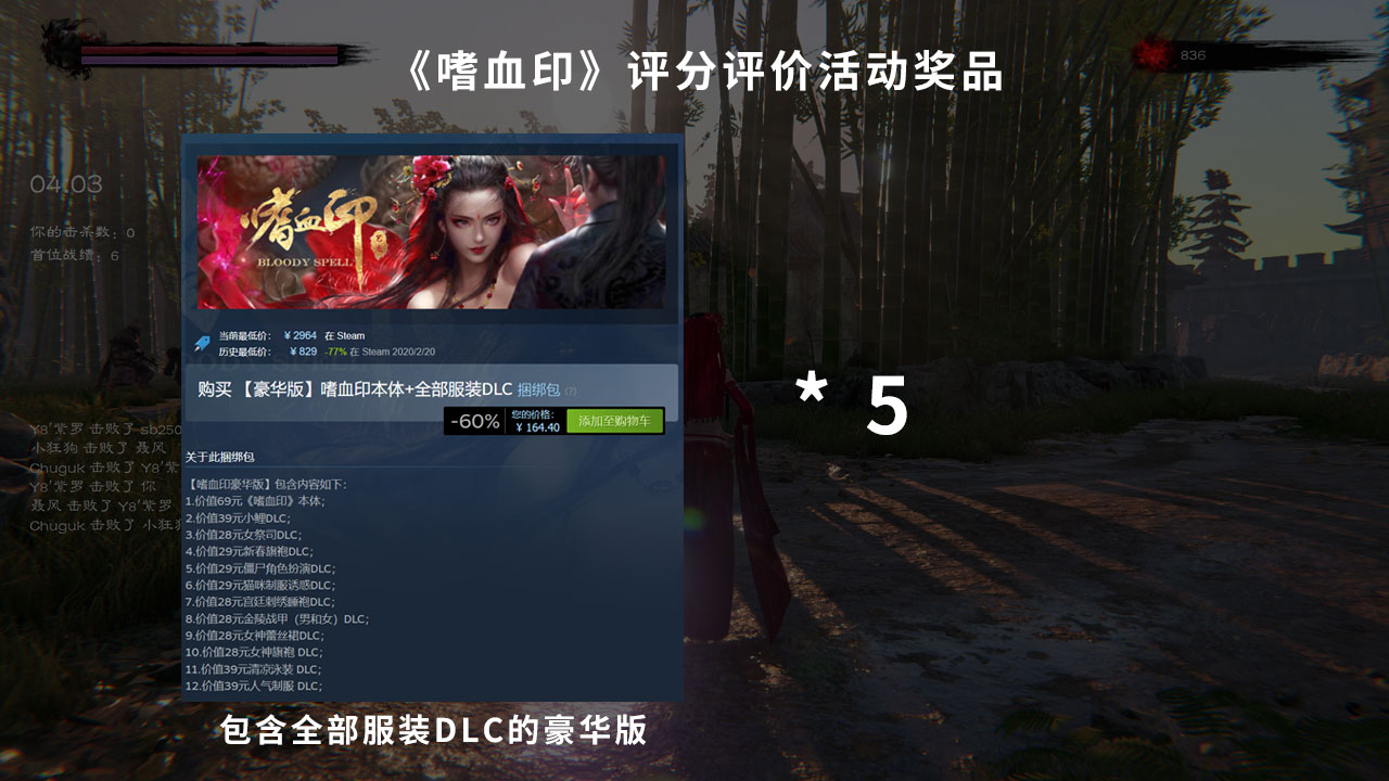 活动奖励:【豪华版】《嗜血印》本体+全部服装DLC*5