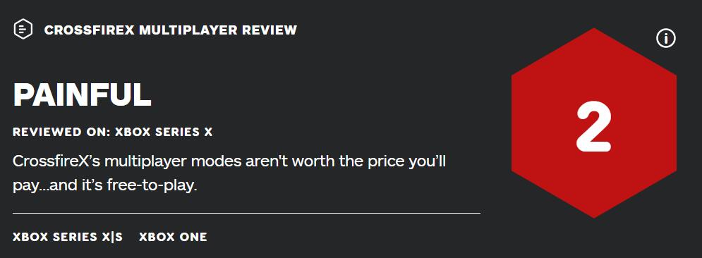#更新(2月16日)# 【《穿越火线X》多人模式获IGN 2分】今日IGN更新了《穿越火线X》多人模式的评价:2分。IGN编辑表示《穿越火线X》的多人模式完全不值得玩家去体验,就算这模式是免费的。除了幽灵模式有一些微小的亮点之外,多人模式整体只能用噩梦般的体验来形容,这款游戏完全不应该以目前的状态发布。相较于这些问题来说,游戏的pay-to-win机制甚至都不是最糟糕的事。