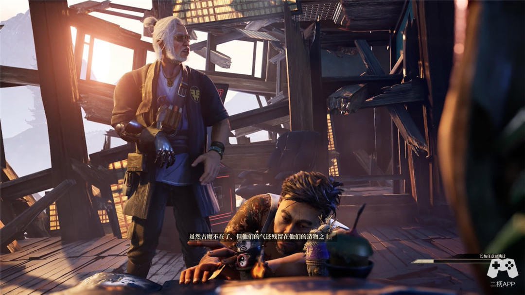 其他游戏里你可能都会想让主角多一些对白,但影子武士3里老王永远停不下来的嘴实在有些“聒噪”,无休止的吐槽和美式冷笑话,与同伴的拌嘴吵闹。本作仍然保持了轻松诙谐的气氛,当你觉得剧情让你有些感动或者伤心时,老王会用实际行动告诉你,我们这个游戏没有伤感。在我测试的时候,游戏的文本翻译也让我耳目一新,大量运用网络语言和有趣的梗。翻译也极大程度上保证了游戏的有趣性。