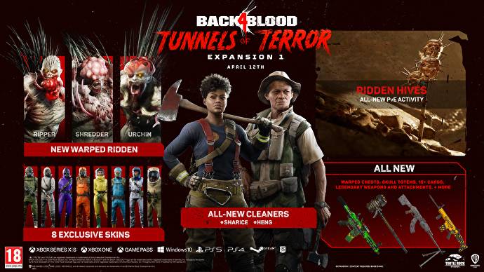 【《喋血复仇》已经突破1000万玩家,首个DLC将于4月份推出】Turtle Rock Studios今日宣布,自去年秋天《喋血复仇》发售以来,目前游戏的玩家人数已超过1000万,同时首个DLC“恐怖隧道”(Tunnel of Terror)也确认将于4月12日发布。据悉该DLC将包含在终极版、豪华版以及年度通行证中,也可以单独购买。在DLC“恐怖隧道”中将带来新的合作任务、新角色以及皮肤、新武器和新卡牌等内容,同时新增的“No Hope”难度也将一起推出。