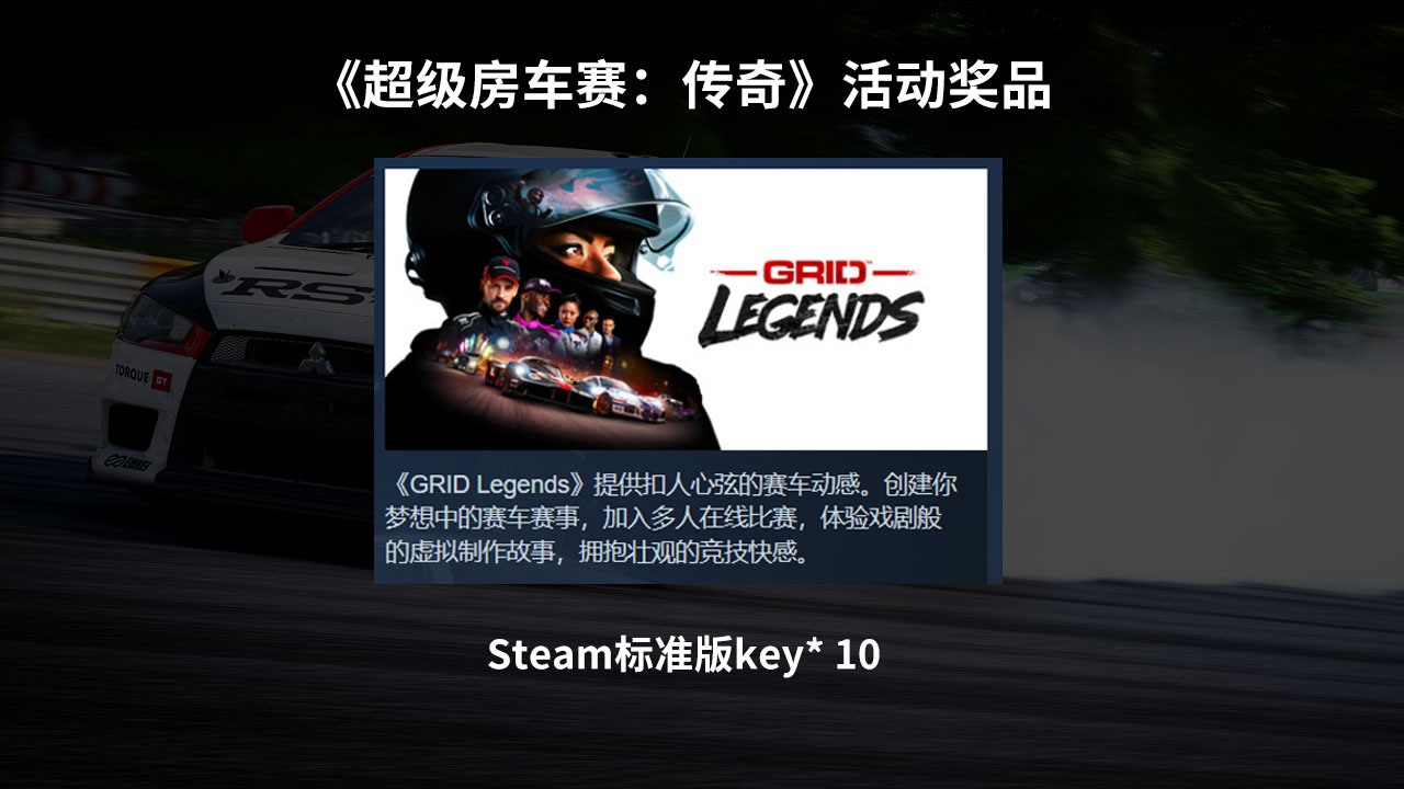 关注《超级房车赛:传奇》抽10个游戏Steam标准版key