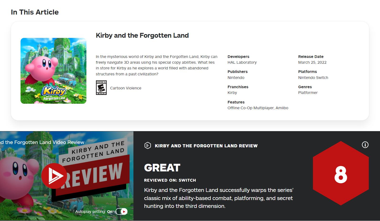 《星之卡比 探索发现》媒体评分解禁,IGN 8分 GS 9分