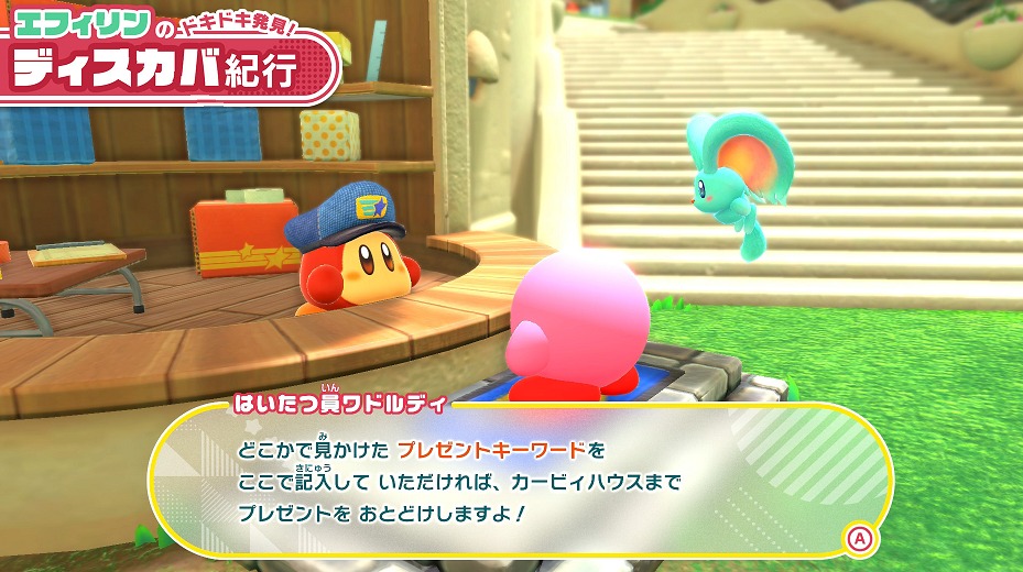 【《星之卡比:探索发现》礼物关键词汇总】《星之卡比:探索发现》已于昨天正式发售,不知大家在这个全新的3D世界中探索的进展如何。游戏中在解锁瓦豆鲁迪小镇的礼物屋后可以可以和快递员对话通过输入礼物关键词获得一些金币或道具,这里为大家整理下目前收集到的关键词,希望对柄友们的冒险有所帮助~