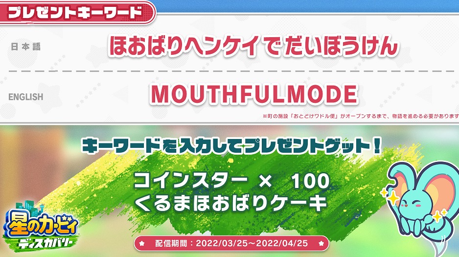 1、英文:MOUTHFULMODE(日文:ほおばりヘンケイでだいぼうけん),可获得硬币星X300+汽车塞满嘴蛋糕 (4月25日前可用)