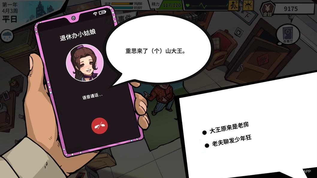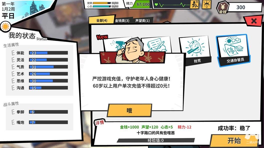 缺啥补啥是没错,但也要讲究劳逸结合避免老房的健康和精力不足而倒下。而且,各种进阶活动都要消耗大量金钱,老房可怜的退休金只是杯水车薪,只能发动老年人再就业赚点零花钱来支撑养成的继续。但是赚辛苦钱虽然来得快却也会降低老房的属性,游戏就是在不断的选择中左平衡一点,右平衡一点,努力把日子过下去。