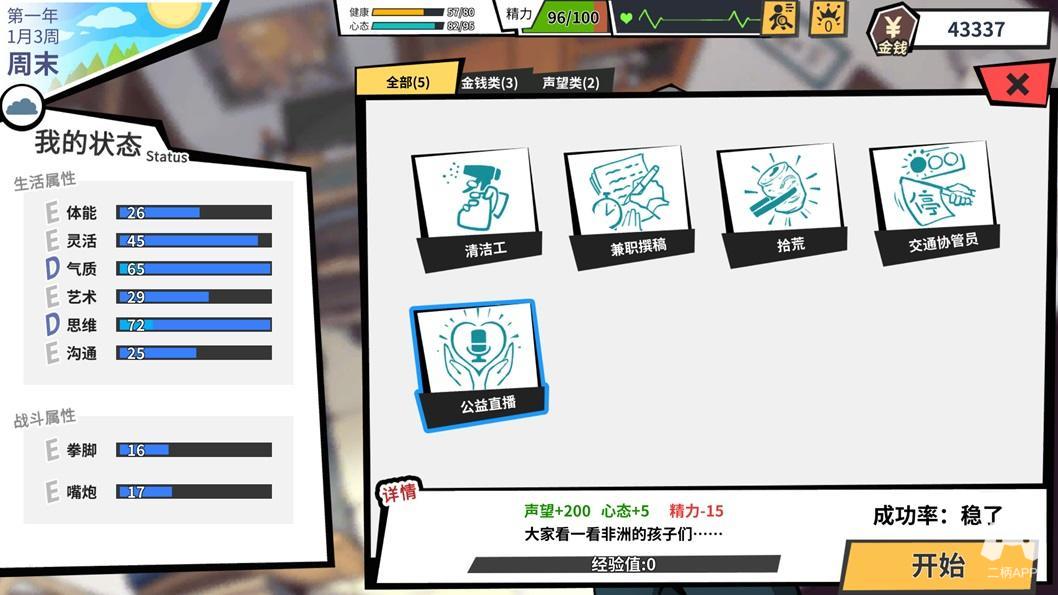 看报能够增加思维和沟通能力,看电视能提升气质和艺术,做家务能够保持体能与灵活度,上网冲浪虽然不健康却能放松心态......想要成为旅行家,体能当然是首要。而网红主播则需要强大的口才与沟通能力。游戏的养成系统说简单却也不简单,根据需求合理规划才能保证力气用对地方。