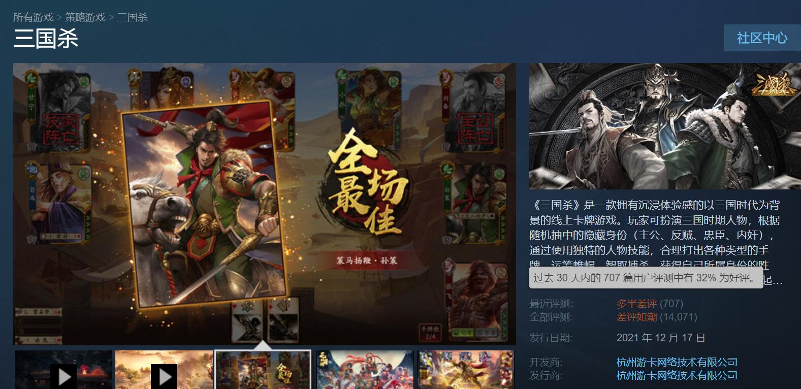 《鬼谷八荒》与《三国杀》玩家竟开启了争夺差评榜倒第一之战