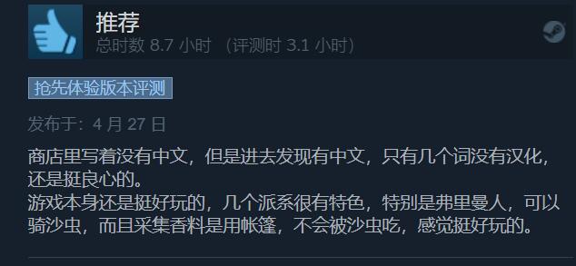 《沙丘:香料战争》Steam获“特别好评”