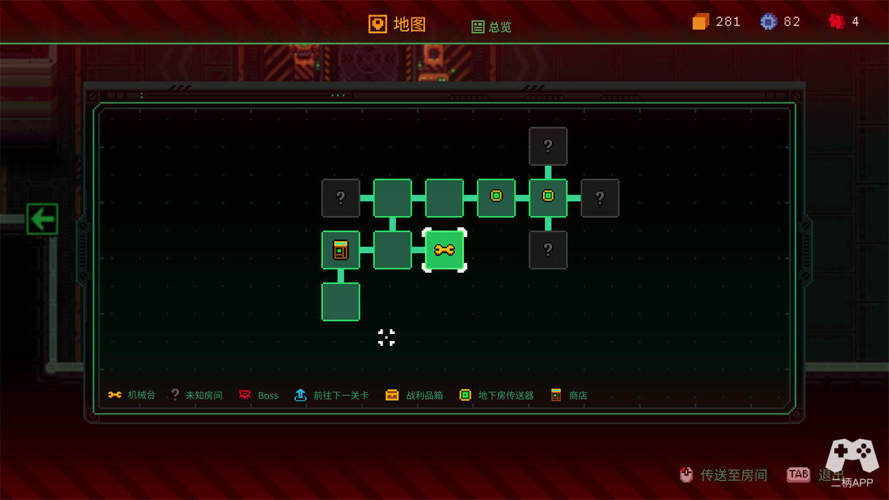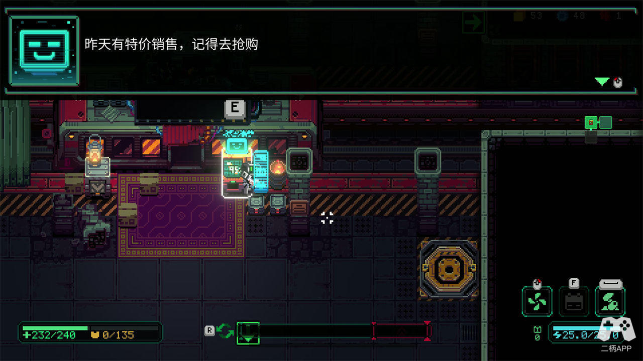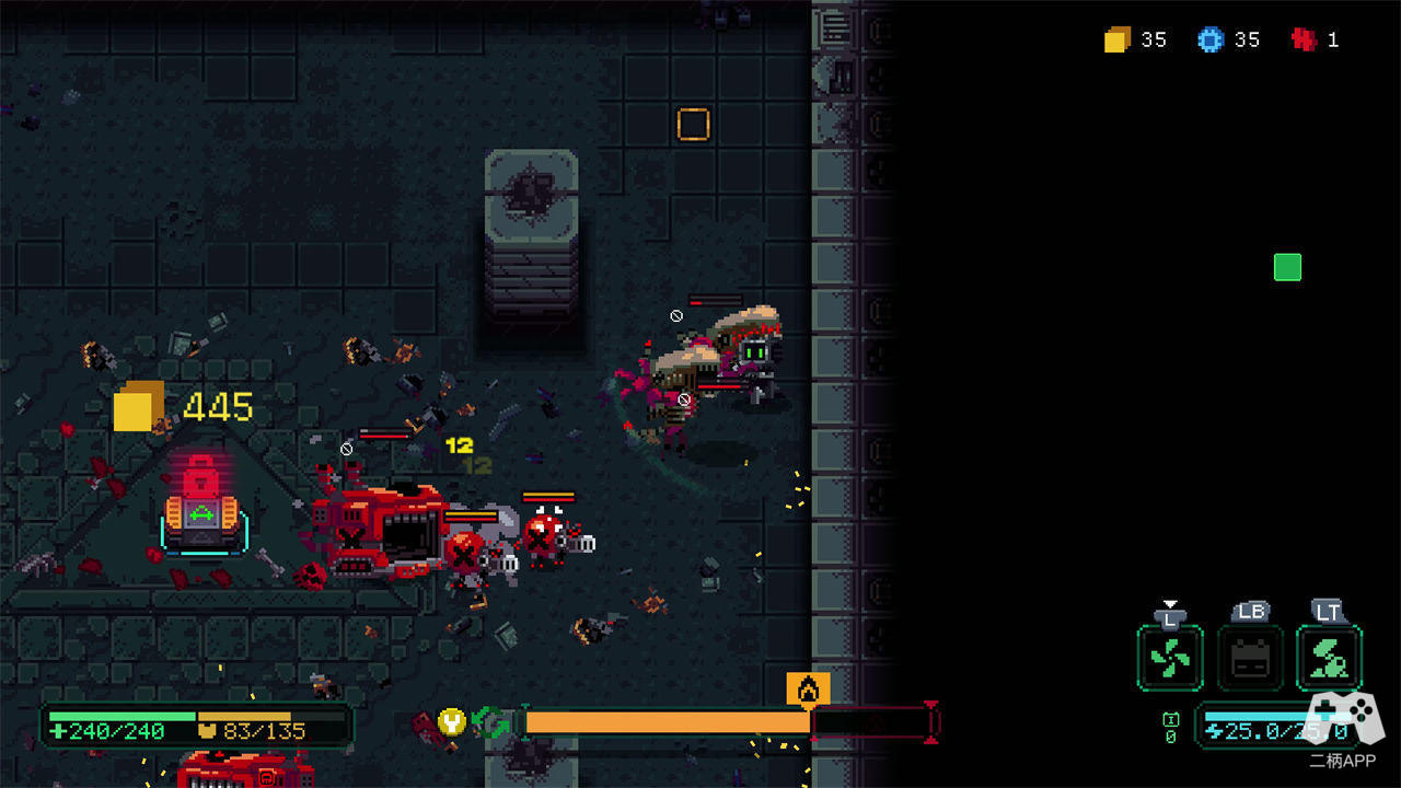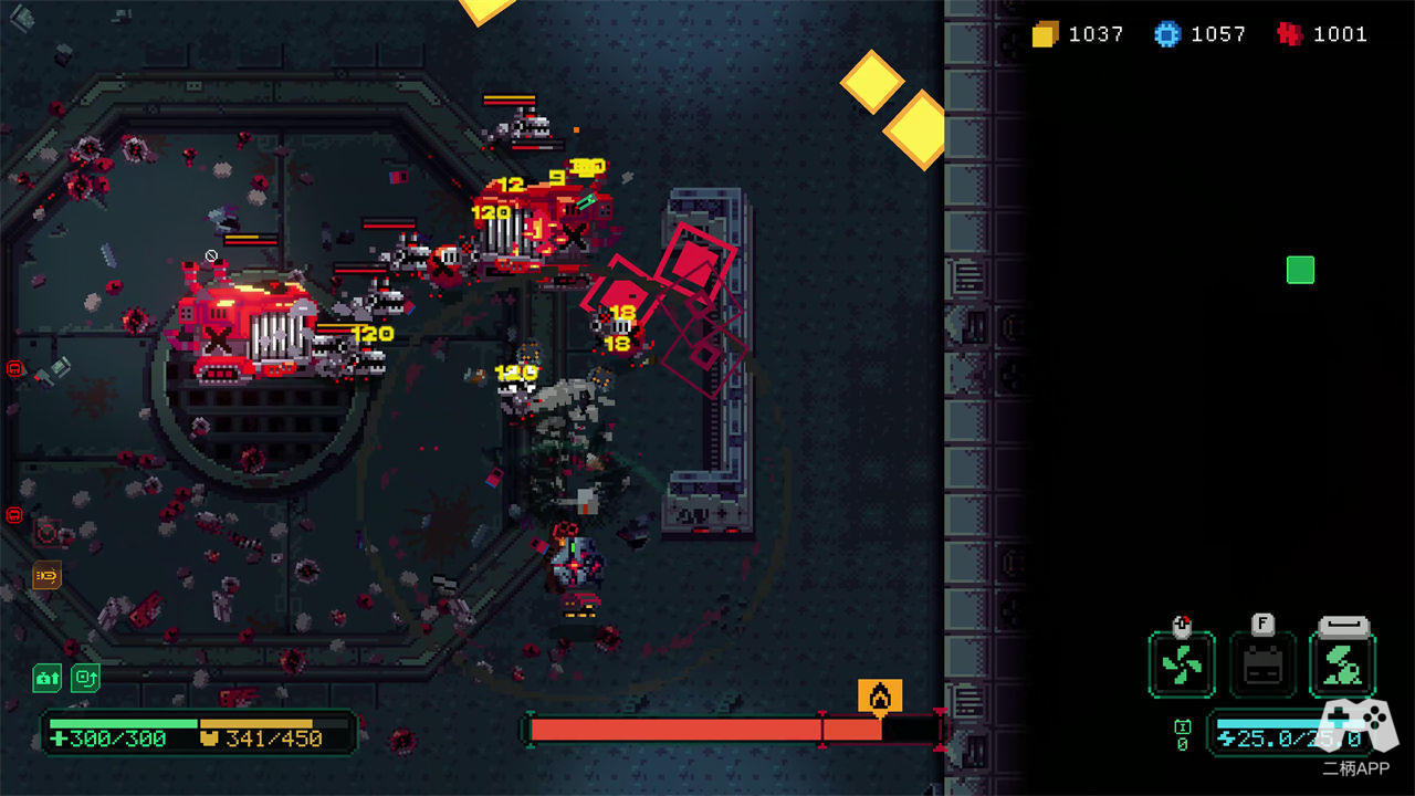 游戏选择了最为直观的2D俯视射击风格,存在部分近战武器及一些特殊技能。玩家在有点类似古早版本《怪物猎人》的分区式地图里不断探索,扫荡完一个区域后进入下一区域,直至抵达最终Boss的位置。在战斗过程中收集装备或是货币,进而强化自身。不断战斗,不断提升,直至抵达终局。而每次死亡带来的则是装备的清空及探索进度的丢失。简单明了的游戏机制,明确地告知诸位玩家们:想要通关,可能得多死几次。
