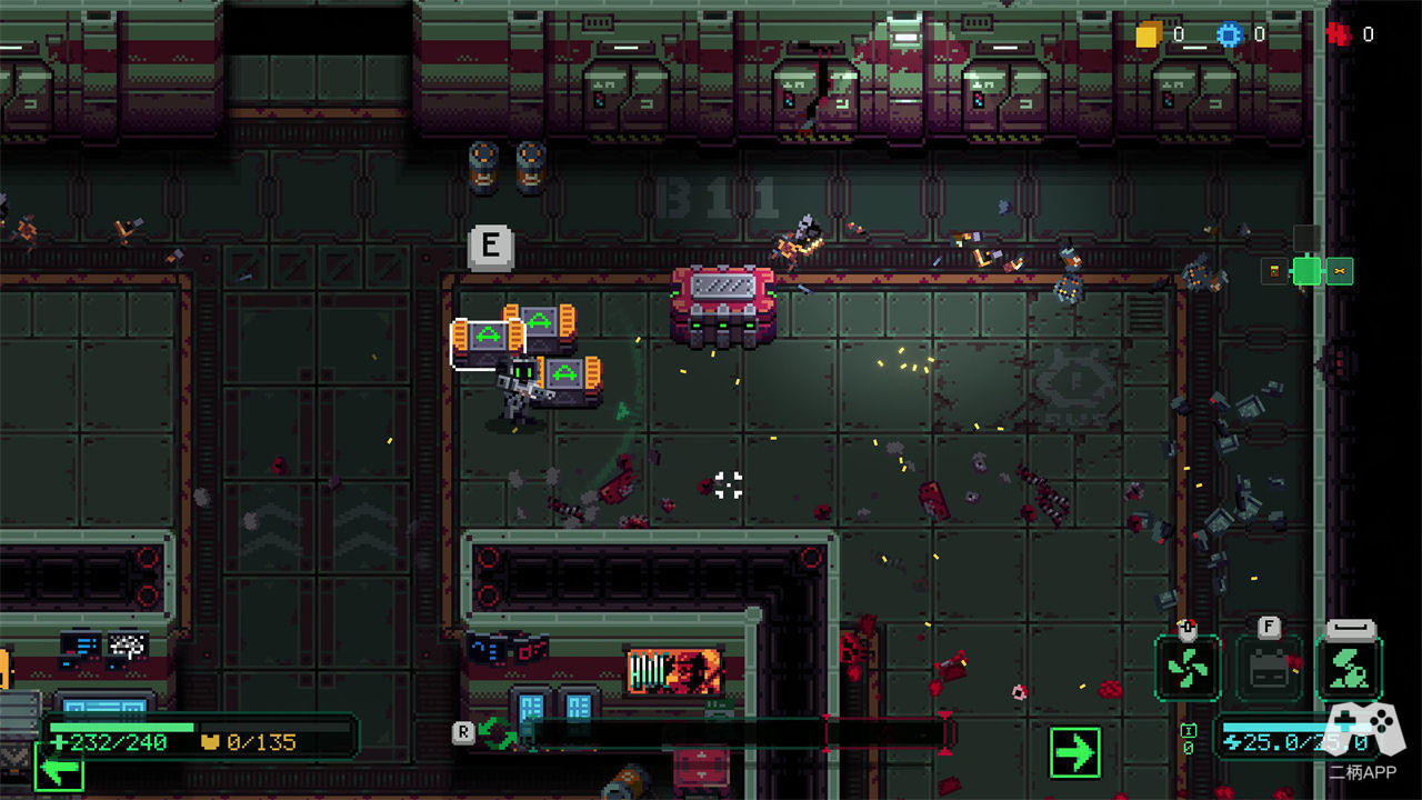 《Metal Mind》的基本操作十分简单,在键鼠模式下游戏的主要按键仅为WASD方向键及鼠标左键,你需要控制自己的角色在敌人的重重包围下闪转腾挪,并利用武器找准机会进行反击,并清空地图。也许是操作比较简单,游戏的教学关被放置在了出生点边上不太明显的位置,比较容易错过。这边建议大家还是主动过一下教学关,以便充分理解游戏机制。角色可同时携带最多两把武器,躯体,核心及驱动系统配件各一,在游戏的任何时间,玩家均可自由切换已经携带的两把武器,但若想改变自身装备,则必须在非战斗阶段里移动至装配台所在区域进行更替。在战斗过程中除了使用鼠标左键点按操作进行射击或是近战攻击之外,游戏本身存在“过热值”的设定,持续射击导致机体过热会对自身造成伤害。因此战斗过程钟并不能无脑地狂点鼠标一味射击。在合适的时机按下“散热”键,或者在恰当的时机消耗电量使用主动技能,也成为了通关的“必修课”。