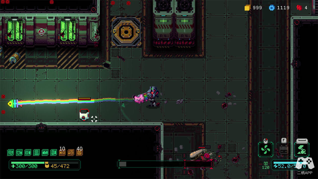 在购物区的军火商店处,玩家一共可以购得约40种各式装备。而在清图之后的开箱环节,同样有一定几率让人直接入手新装备。游戏主打平面射击,但近战武器也是各式各样。远程枪械里既有主打射速,以数量取胜的步枪,也有主打准度,以威力制敌的大狙;有科幻风格的镭射枪,也有萌系主题的阿猫阿狗皮肤枪。近战武器除了经典的刀剑类以外,还有战法特殊的近身范围攻击武器。如果你想降低难度,追踪飞弹发射器无疑是最好的选择,即使射偏了也大概率击中敌人的特性,无疑是手残人士的福音。这些装备本身也分为“普通”“精良”“机密”等层级,如果实在难以抉择,不妨依照稀有度来甄别吧。