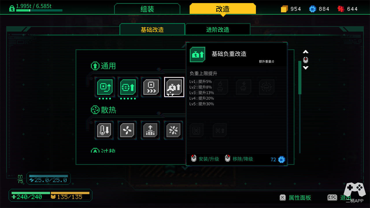 官方在游戏的Steam页面就提醒大家:“不是所有的改造都会提供正向收益”。因此,在改造部分,除去已经提到的负重限制造成的制约以外,各种改造选项自身可能也会成为“陷阱”。但其实游戏中的所有基础改造都是可以退回的。当你发现自己身上的改造正在提供负收益时,通过退回机制可以收回所有的货币,重新进行改造。