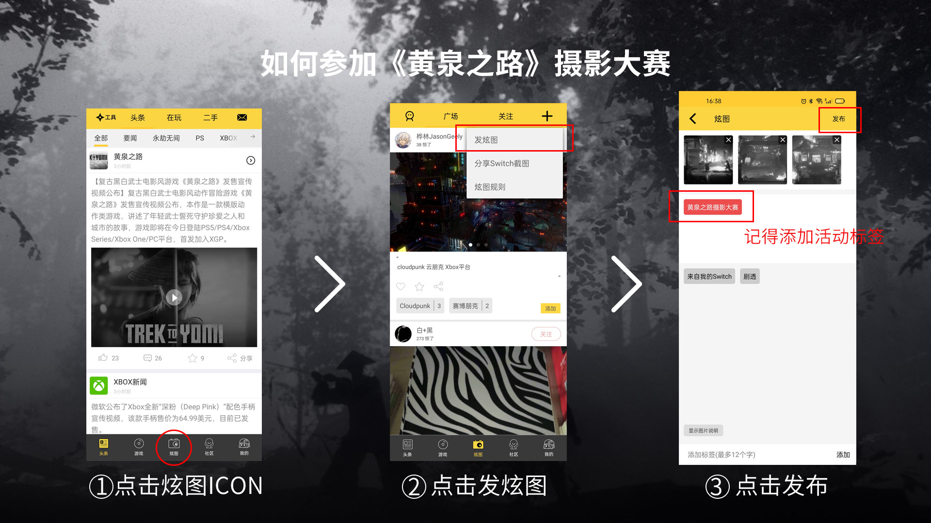 【参加《黄泉之路》摄影大赛抽5张100元京东卡】复古黑白武士电影风游戏《黄泉之路》已正式登录PC/PS5/PS4/XSX|S/XboxOne平台,并已上线XGP/PGP。不知各位柄友是否已经沉浸在这款黑白风格鲜明又颇具电影风的横版动作游戏里,为庆祝游戏发售,我们特此在APP内【炫图】模块举办一场小小的摄影大赛,欢迎各位柄友在《黄泉之路》游戏里拍出有趣的、精美的游戏图片,并发布到【炫图】模块,发布时记住添加#黄泉之路摄影大赛#活动标签,我们将从所有活动时间内并带有活动标签的炫图中抽取5名玩家赠送100元京东卡。