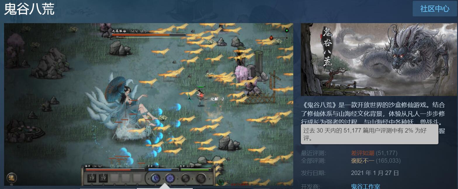 《鬼谷八荒》自MOD制作工具上线以来,更新20天后获将近4.9万的玩家差评